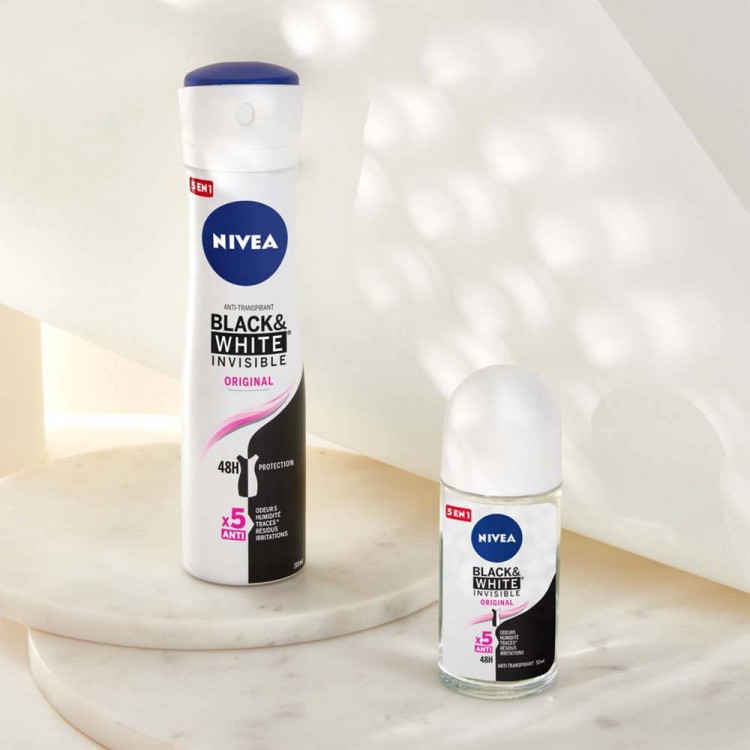O spray Black & White Invisible Original oferece uma eficácia que não deixa manchas brancas na roupa escura e reduz o aparecimento de manchas amarelas na roupa branca.
