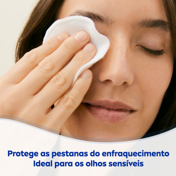 O desmaquilhante de olhos dupla ação que remove maquilhagem e batom de longa duração ou à prova de água protegendo as pestanas. Experimente já!
