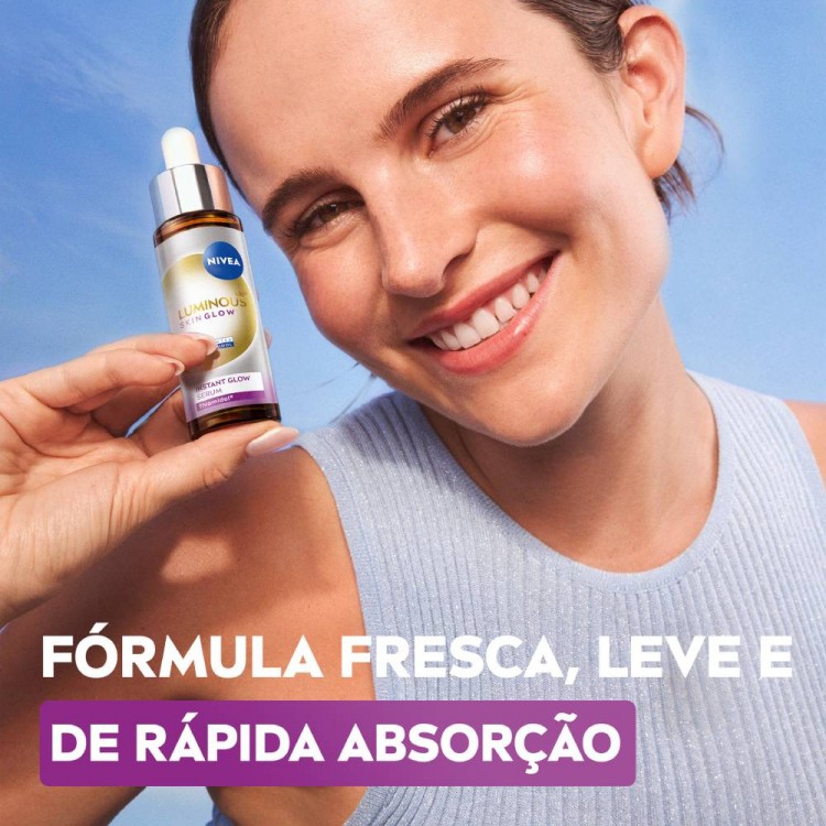 DescriçãoO sérum glow instantâneo Luminous 630 Skin Glow é o primeiro da Nivea a potenciar os processos naturais das múltiplas dimensões do glow: proporciona um tom mais uniforme, minimiza dos poros e oferece uma hidratação refrescante.