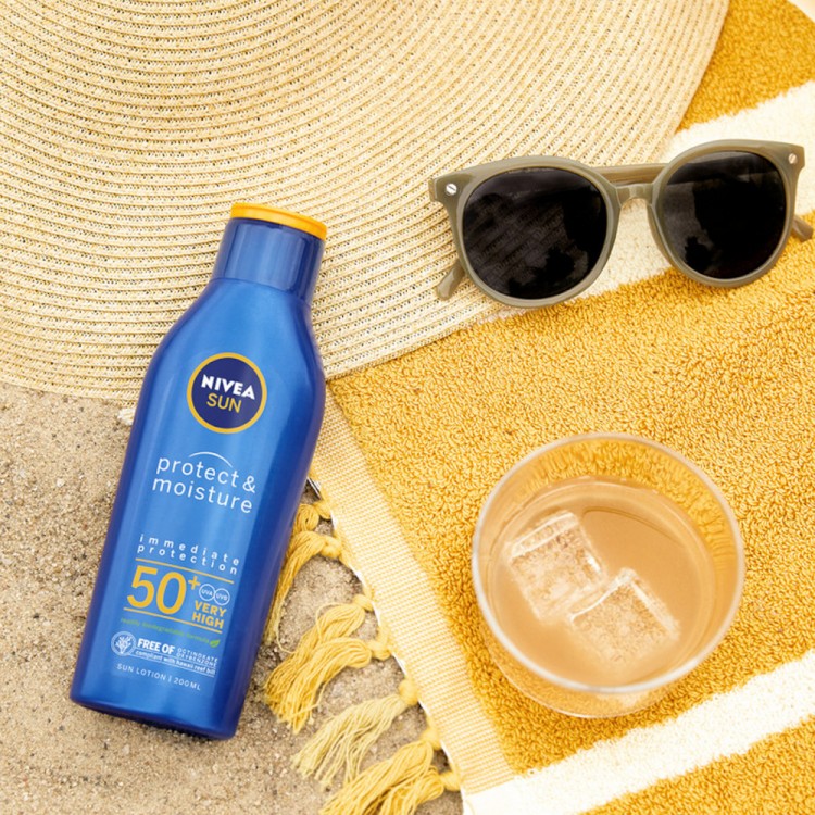 Nivea Sun Protect & Moisture Loção SPF50+ 200ml: um protetor solar hidratante, que protege a pele saudável por dentro e por fora.