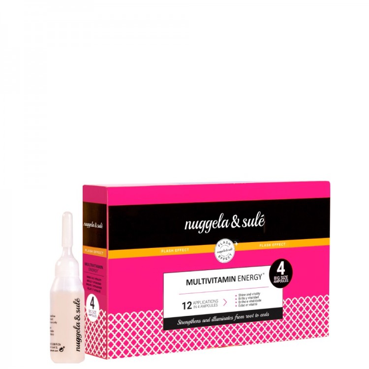 Nuggela & Sulé Energia Multivitamínica Ampola Capilar de Brilho 4x10ml: Contêm uma fórmula exclusiva que fornece vitaminas essenciais que iluminam das raízes do cabelo até às pontas.