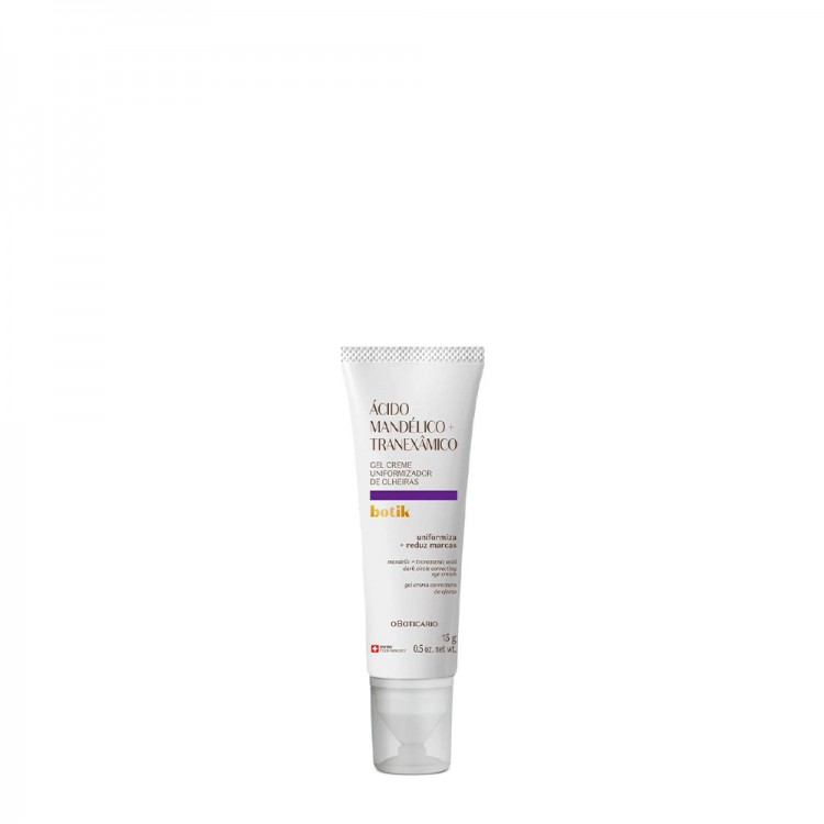 Ao utilizar diariamente, este gel creme atua diretamente nas olheiras, reduzindo visivelmente a pigmentação e uniformizando o tom da pele. Isso resulta numa área dos olhos mais clara e suave, contribuindo para um olhar mais fresco e jovem. Os ingredientes ativos, como o ácido mandélico e o tranexâmico, combinam propriedades esfoliantes e iluminadoras, promovendo uma pele mais uniforme e bem cuidada.