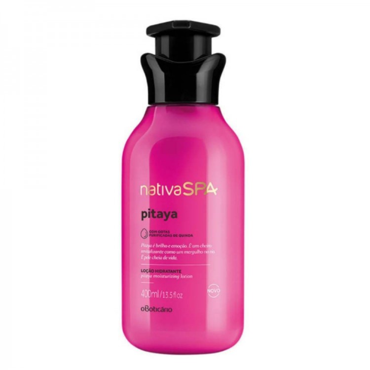 É sempre bom manter a pele macia e hidratada. A Nativa SPA Pitaya Loção Hidratante Corporal é a aliada perfeita para proporcionar várias sensações à tua pele.Esta loção hidratante tem como protagonista a fragrância de Pitaya, um cheiro revitalizante como um mergulho no rio. O seu aroma é intensificado na pele graças às microcápsulas da fragrância presentes na fórmula, que se rompem ao longo do dia.