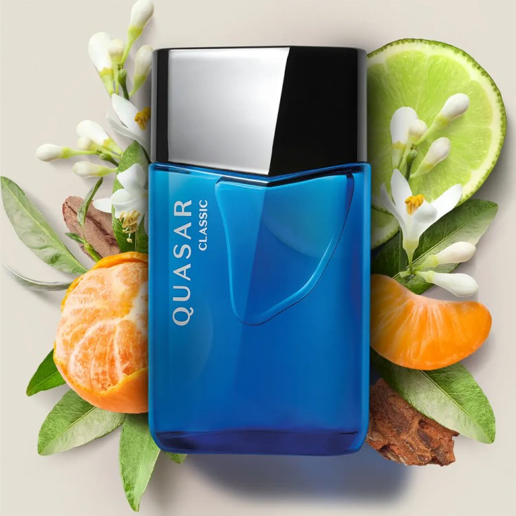 Quasar, uma fonte de energia, frescura e vitalidade. A sensação de energia e vitalidade irradia da combinação das notas refrescantes de bergamota,limão e mandarina. A vibração do homem que vive em ritmo pulsante é estimulada pelo fundo amadeirado. Uma explosão de energia para o homem determinado que encara a vida e os seus desafios com a paixão de um vencedor.