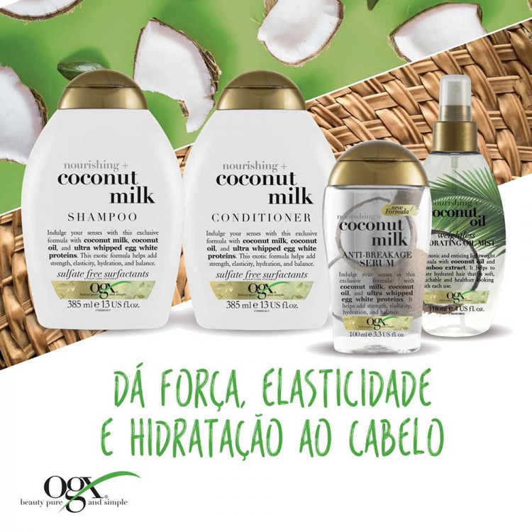 Formato Travel Size: Esta mistura cremosa e nutritiva de leite e óleo de coco ajuda a fortalecer e hidratar o cabelo, deixando-o perfumado, macio e brilhante.