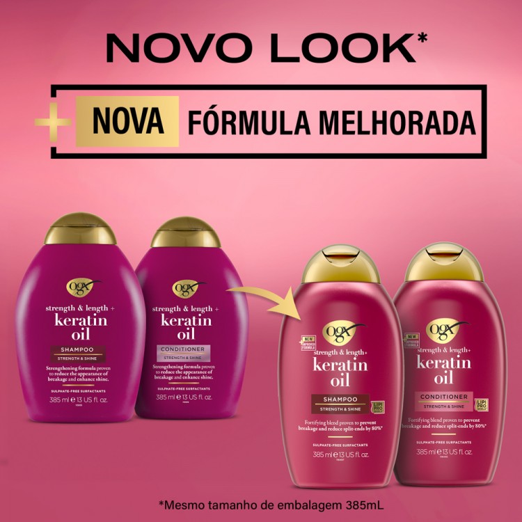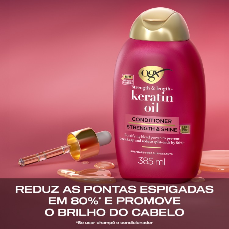 DescriçãoO condicionador Óleo de Queratina fortalece intensamente o cabelo danificado, ajudando a reduzir as pontas espigadas e a prevenir quebras visíveis desde a primeira aplicação.
