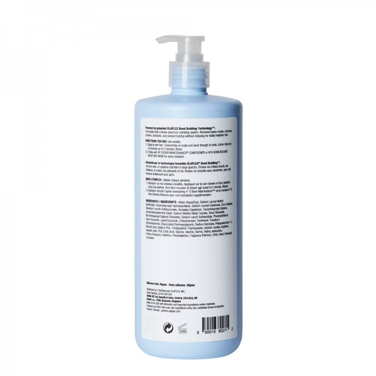 O sistema Bond Maintenance® Clarifying Shampoo é formulado com um Sistema de Clarificação de Amplo Espectro que remove o acumular de produtos, excesso de óleo, minerais de água dura, cloro, metais pesados e poluentesnão causa ressecamento.