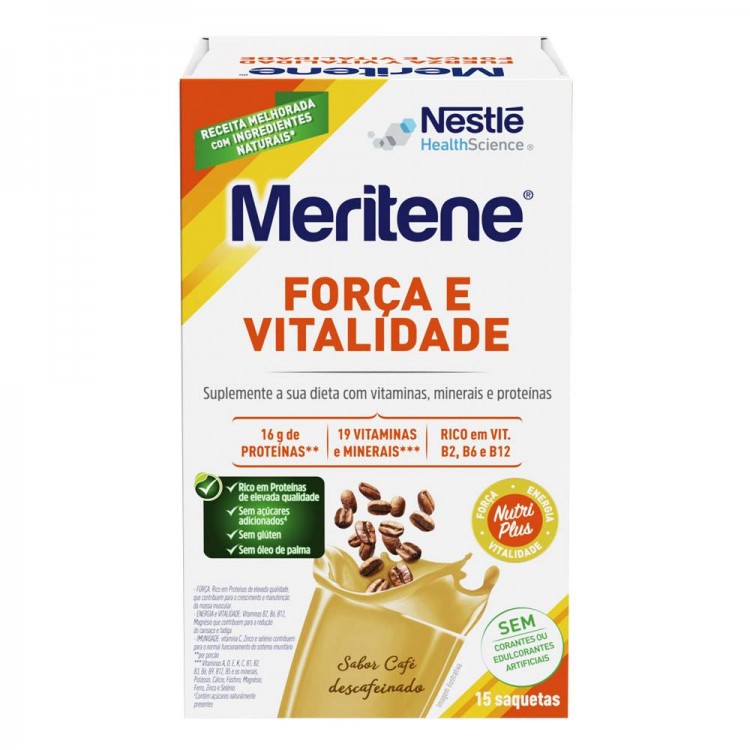 Meritene Força e Vitalidade recomenda que siga uma dieta variada e equilibrada e que pratique exercicio fisico. Este produto não deve substituir as refeições principais. Para adultos. No caso de estar a tomar suplementos de cálcio e vitamina D ou anticoagulantes cumarinicos, por favor consulte o seu médico ou farmaceutico.