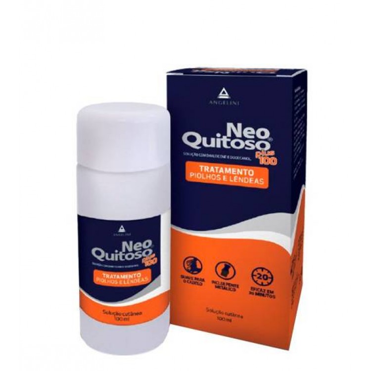 O Neo Quitoso Plus é uma solução que atua sem desenvolver resistências, através de um mecanismo de ação físico (sem inseticida), no tratamento do cabelo infestado com piolhos e lêndeas. Inclui pente metálico.