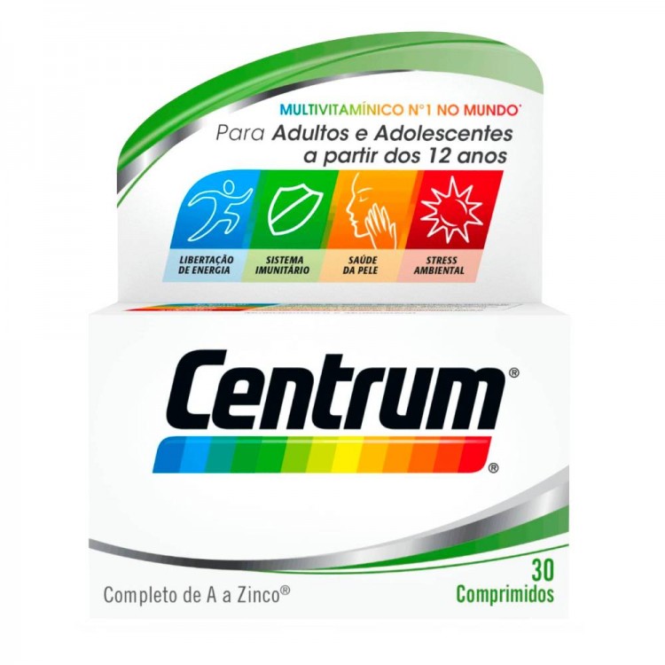 Centrum 30 Comprimidos: Centrum é um suplemento alimentar com vitaminas e minerais para uma vida sã, plena de energia e para manter o bem-estar geral. Com uma fórmula multivitamínica e multimineral especificamente desenvolvida para adultos e adolescentes