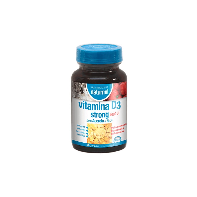 Vitamina D3 100 µg (2000% VRN*), Acerola 100 mg (contém pelo menos 50 mg de Vitamina C, 62,5% VRN*), Zinco 10 mg (100% VRN*); por comprimido.