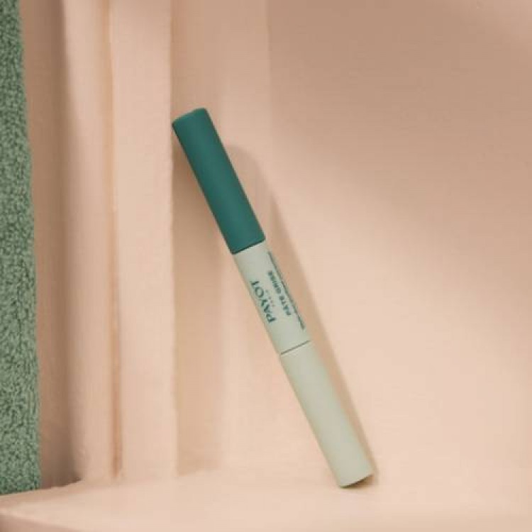 Duas extremidades específicas: Um aplicador em silicone preciso para um tratamento eficaz e uma extremidade em esponja para uma elevada cobertura. Um tamanho prático para usar em viagem fornecido numa caixa de papel 100% reciclada.