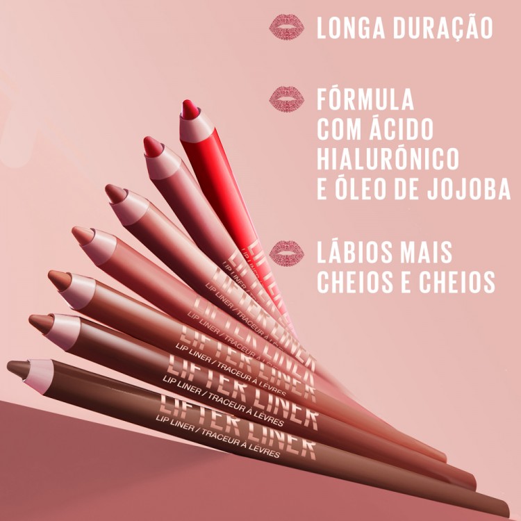 Descrição Descobre o Lifter Liner, delineador de lábios com ácido hialurónico. Lábios com efeito esculpido e cuidado de longa duração. Perfeitos para qualquer ocasião.