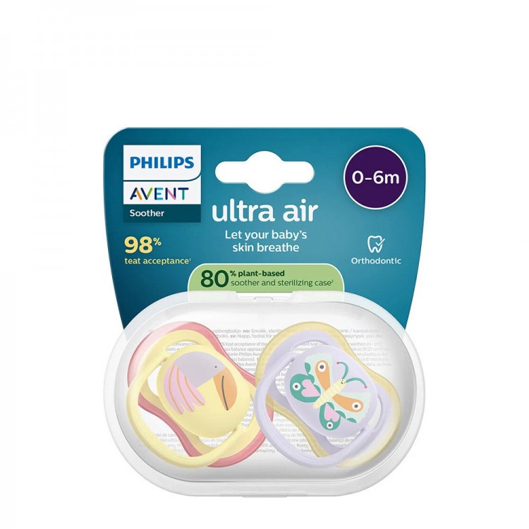 Philips Avent Chupeta Ultra Air é uma chupeta leve que deixa respirar as peles sensíveis.