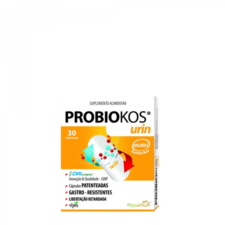 Probiokos Urin é um suplemento simbiótico da PhytoGold que combina probióticos (várias estirpes lactobacillus e Bacillus coagulans), pré‑biótico (FOS), cranberry e uva-ursina. Indicado para apoio ao sistema urinário, ajuda a combater infecções urinárias, urgência para urinar, dor, ardor e desconforto, prevenindo a adesão de bactérias nocivas à bexiga.