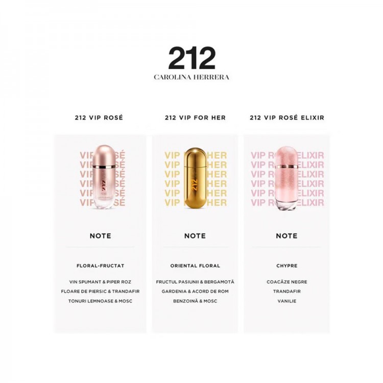 DescriçãoAbraça um mundo de autêntica feminilidade e liberdade com 212 VIP Rosé Elixir de Carolina Herrera, uma interpretação mais sensual e intensa do seu emblemático perfume feminino 212 VIP Rosé.