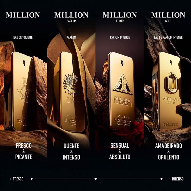 O perfume Million Gold expressa a emoção do sucesso dourado. Irradiando a energia extasiante que te envolve num fascínio pelo ouro.