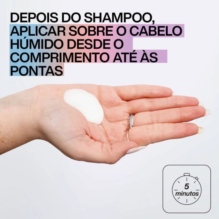Aplicar em cabelo húmido e limpo, do comprimento às pontas. Deixar atuar 5 minutos e enxaguar. Usar 1 a 2 vezes por semana conforme a espessura do cabelo.