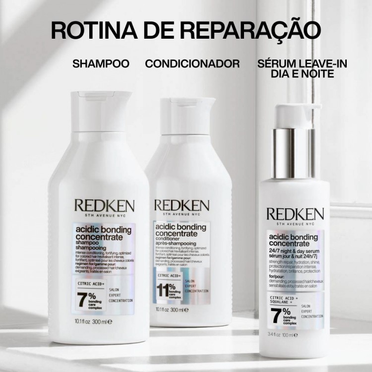 O sérum Redken Acidic Bonding Concentrate 24/7 Dia e Noite repara os danos diários e fortalece o cabelo danificado, garantindo uma ação reparadora contínua, 24 horas por dia, 7 dias por semana.