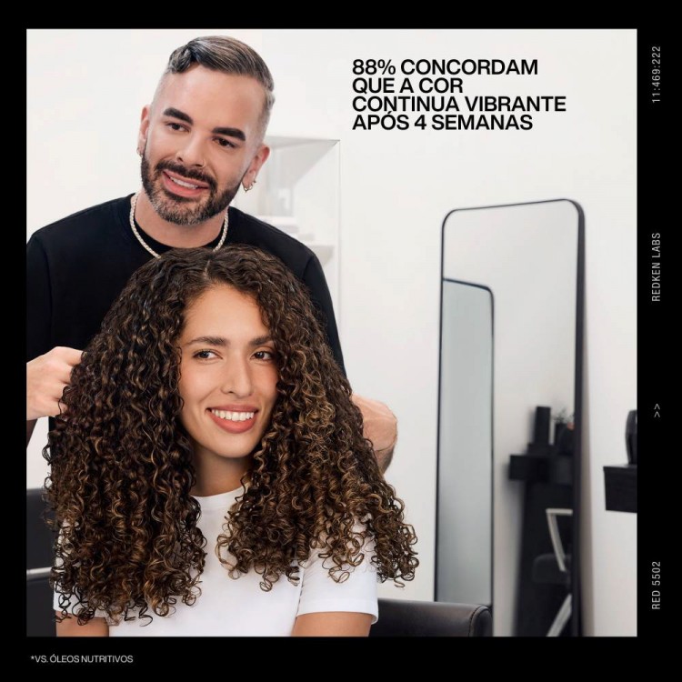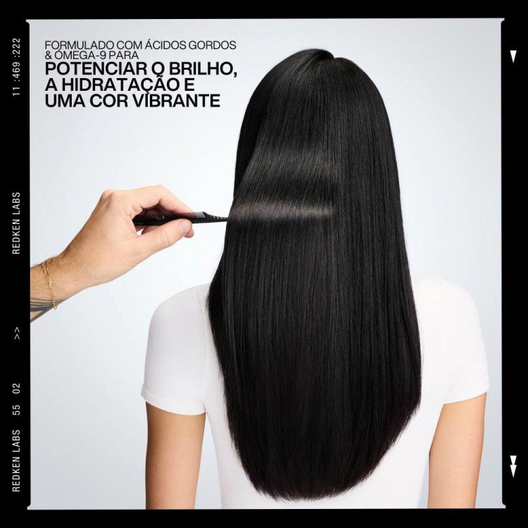 Óleo ultra-leve que proporciona brilho efeito espelho ao cabelo. A fórmula com ácidos gordos e ómega-9 ajuda a selar a cutícula, mantendo a hidratação, aumentando a suavidade e protegendo a cor. Fragrância com notas de frutos vermelhos, jasmim e baunilha. Ideal para todos os tipos de cabelo, com ou sem coloração, sem pesar e sem resíduos.