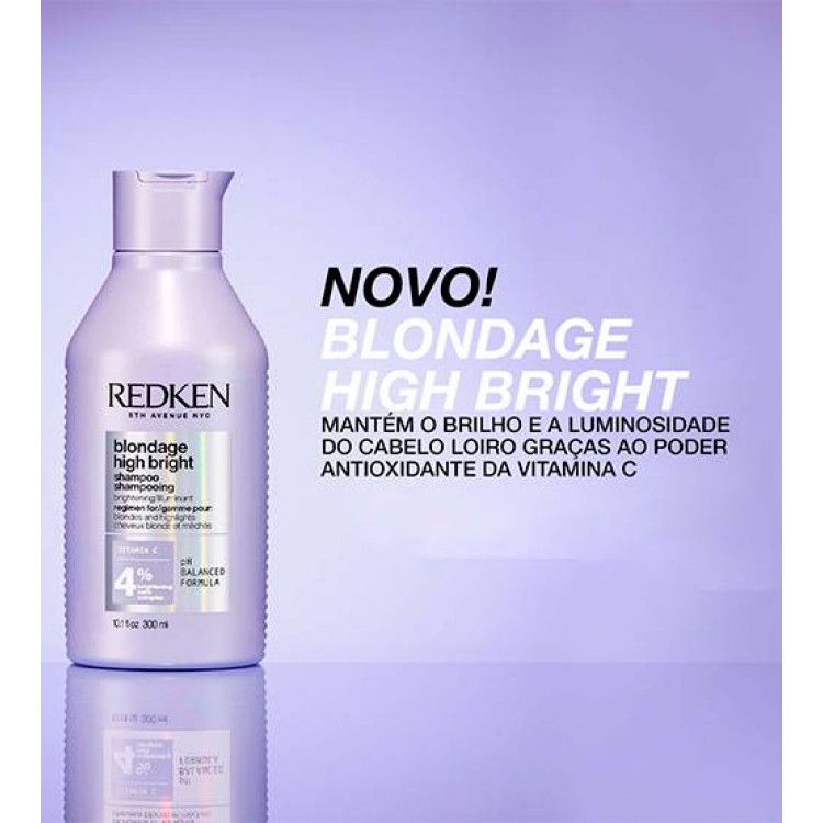 O segundo passo da rotina Blondage High Bright, este shampoo é enriquecido com vitamina C, conhecida pelo seu poder antioxidante, e com o complexo de cuidado iluminador que ajuda a restaurar a luminosidade do cabelo. Remove instantaneamente as impurezas, revelando um loiro mais saudável e brilhante. Indicado para cabelos loiros naturais ou com coloração que perderam brilho devido à acumulação de resíduos, poluição ou metais presentes na água.