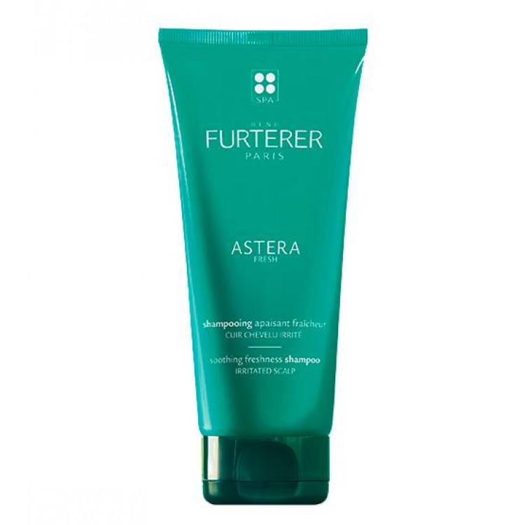 Rene Furterer Astera Fresh Shampoo Suavizante Refrescante limpa suavemente e acalma desde a primeira aplicação graças ao efeito de resfriamento dos óleos essenciais de hortelã e eucalipto. Rico em extrato de asterácea, acalma irritação e coceira para traz
