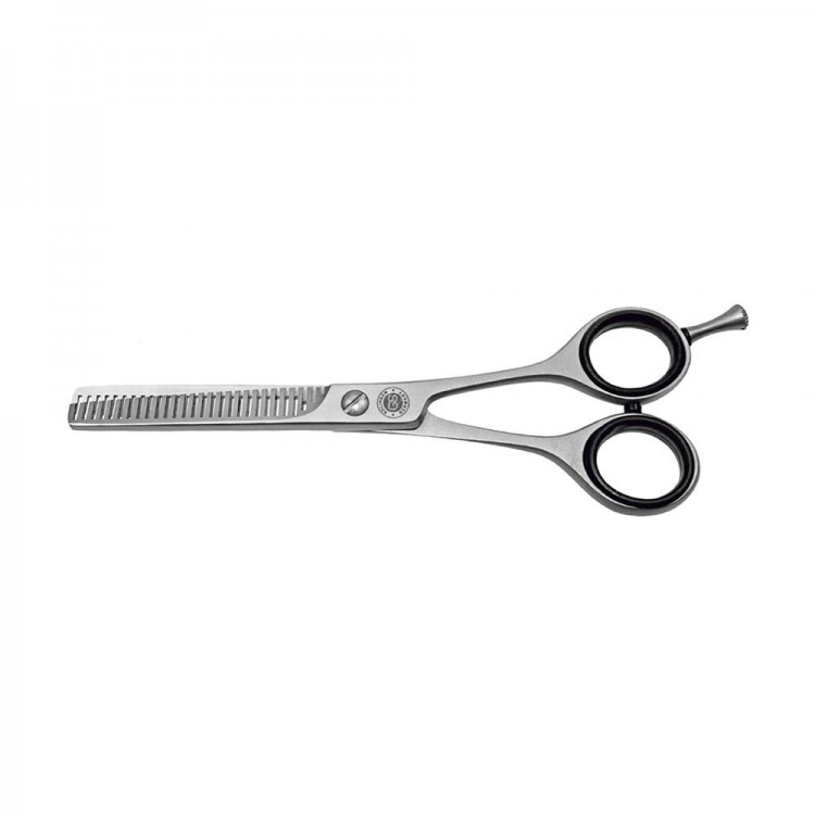 RickiParodi GS Solingen Conventionel Satin Tesoura de Desbaste 2 Faces 5.5: A tesoura de desbaste com duas faces Conventionel Satin, com 5.5 polegadas, é uma ferramenta de alta qualidade para profissionais de cabeleireiro.