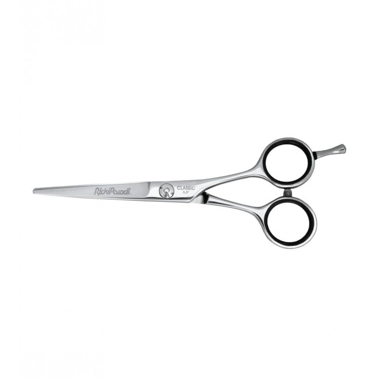 A tesoura profissional da RickiParodi, de linhas suaves e ergonómicas, é feita em aço japonês temperado em gelo, para elevada durabilidade