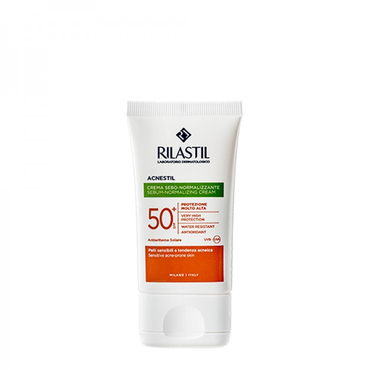 O Rilastil Acnestil Protetor Solar Seborregulador SPF50+ é um protetor solar facial desenvolvido para peles oleosas, acneicas e sensíveis, com ação seborreguladora.