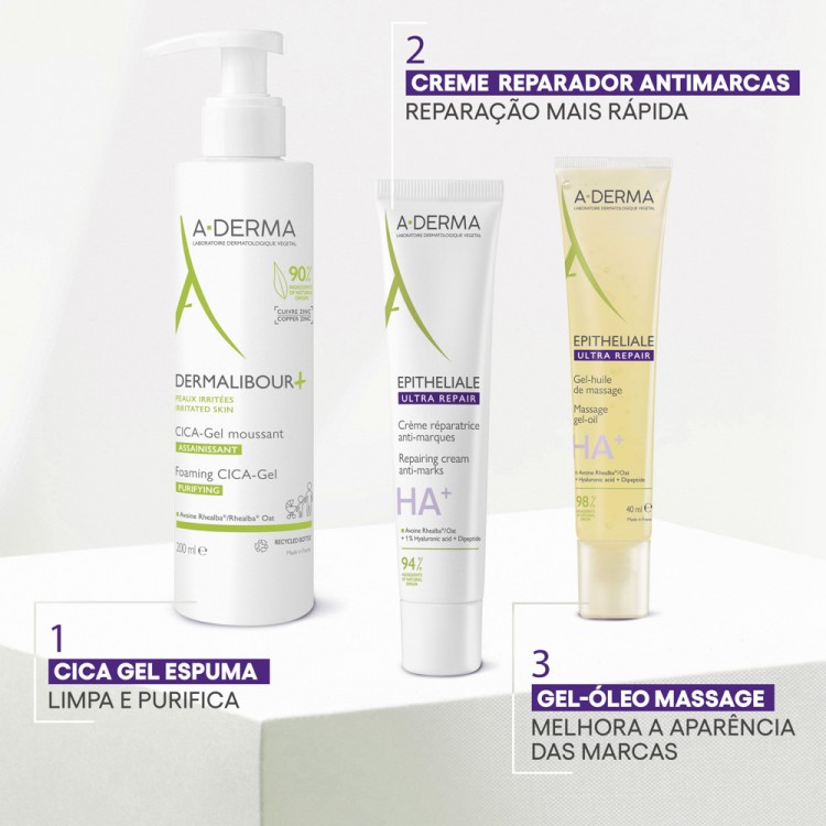 Epitheliale Ultra Repair é um creme reparador antimarcas para rosto e corpo, ideal após procedimentos estéticos, pequenas lesões cutâneas ou tatuagens. Contém Cicahyalumide®, um complexo com Aveia Rhealba®, dipeptídeo e ácido hialurónico concentrado para acelerar a reparação e suavizar a pele. A fórmula tem 94% de ingredientes de origem natural e é adequada para adultos, crianças e bebés, incluindo zonas íntimas externas.