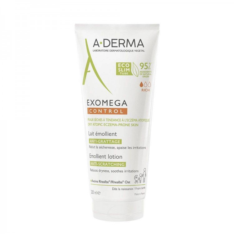 Exomega Control Leite de cuidado emoliente ajuda a reparar a barreira cutânea e atua sobre o cimento intercelular. Sem perfume. Textura ligeira.