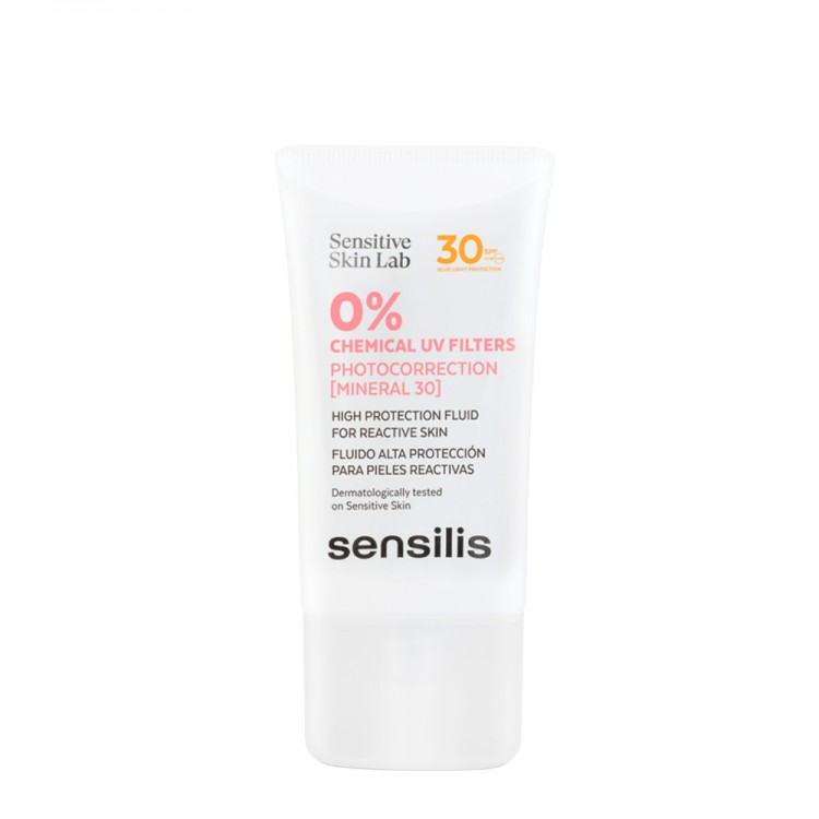 Fotoproteção fluida 100% mineral com SPF30 para pele reativa que proporciona uma ação calmante e hidratante.