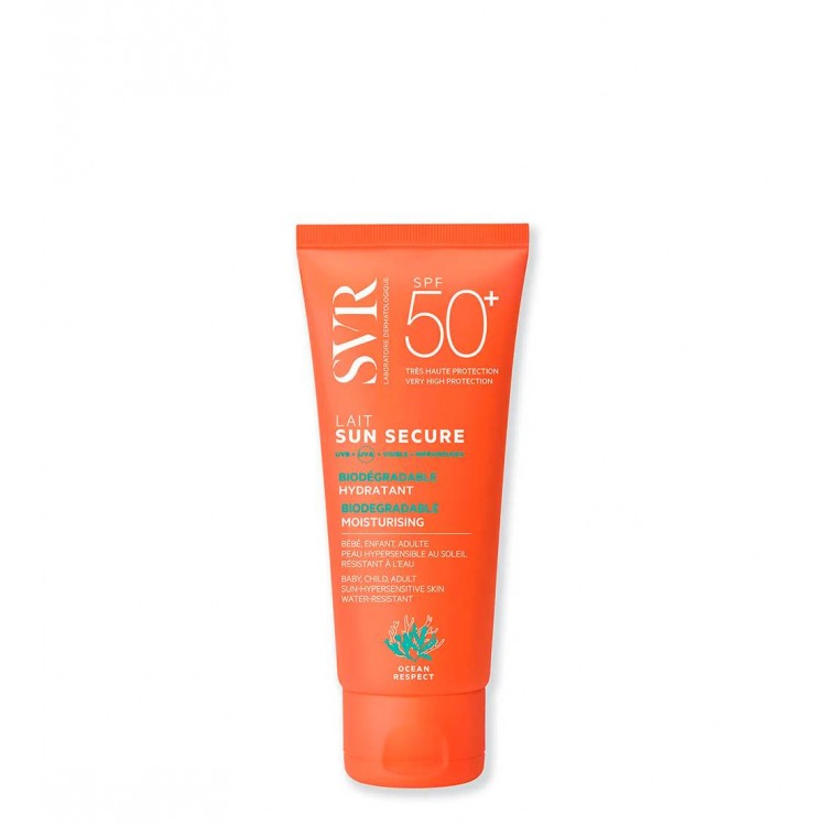 SUN SECURE Leite SPF50+ é um leite de textura aveludada e acabamento invisível adequado para todos os tipos de pele do corpo. A sua textura funde-se na pele e é absorvida instantaneamente, deixando-a perfeitamente hidratada. Resiste à água e à fricção para uma ótima proteção, e pode mesmo ser aplicado sobre a pele molhada. É ideal para a pele hipersensível ao sol de toda a família: bebés, crianças, adultos. A sua fragrância delicada de verão e a sua textura cremosa oferecem suavidade à pele de toda a família.