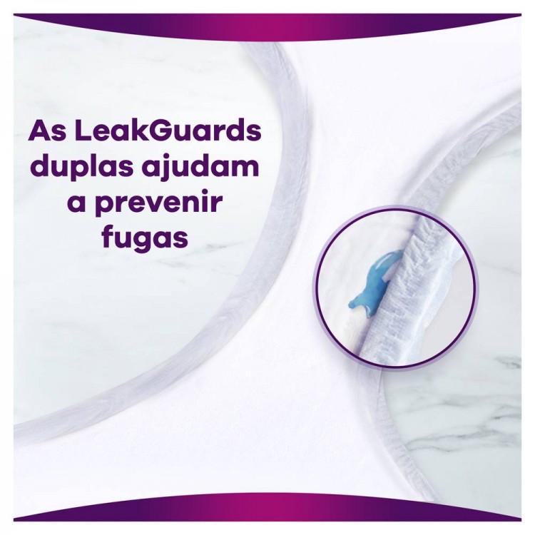 Têm tecnologia RapidDry para absorver as perdas de urina e o odor em segundos.