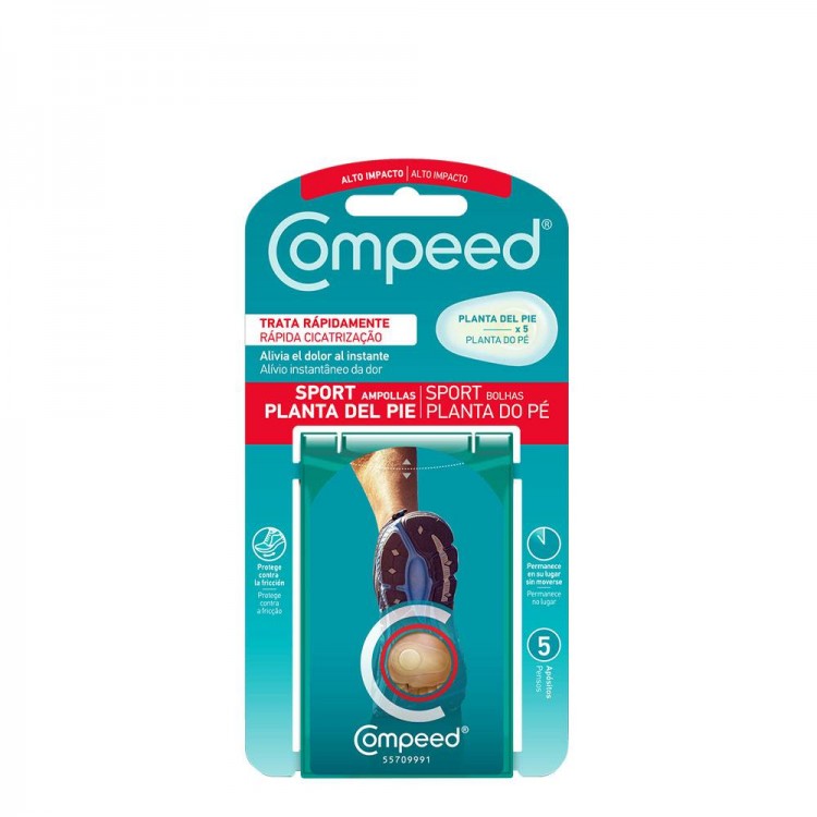 Compeed Bolhas Planta do Pé 5 pensos: Os pensos Bolhas Planta do Pé foram especialmente concebido para se adaptar à planta do pé, de modo a proteger contra a fricção. Ideal para qualquer tipo de bolha na planta do pé.