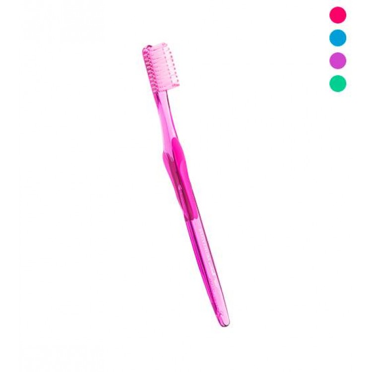 A escova Elgydium Vitale oferece conforto ideal graças à cabeça longa e arredondada, cerdas de nylon suaves e cabo ergonómico antiderrapante.
