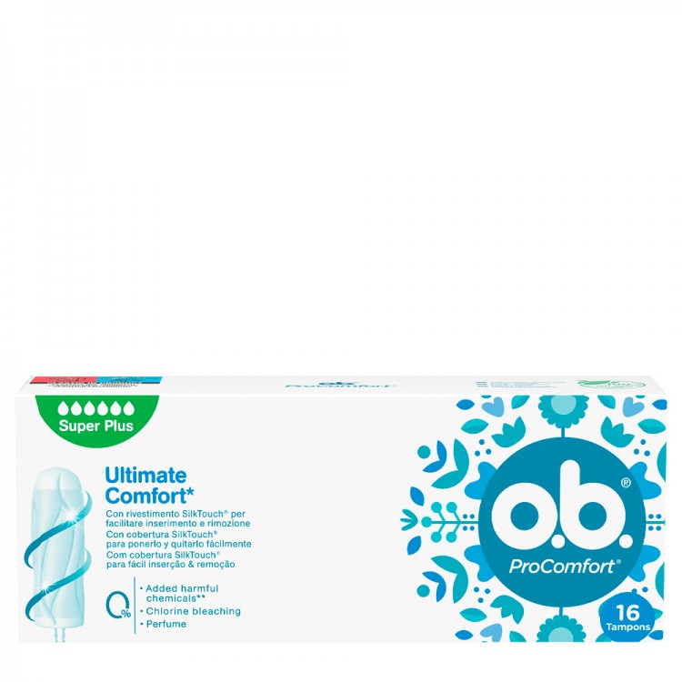 Os tampões da O.B. ProComfort têm uma cobertura SilkTouch para fácil inserção e remoção. Adequado para os dias de fluxo muito intenso.