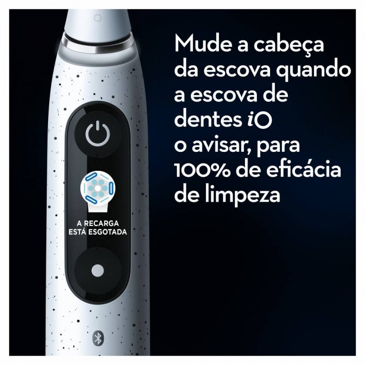 A escova de dentes elétrica iO 10, com o revolucionário carregador inteligente iO Sense, personaliza a sua escovagem com feedback em tempo real, orientando-o para uma cobertura, tempo de escovagem e pressão de escovagem perfeitos, para uma limpeza sem esf