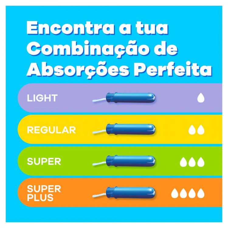 Os tampões Compak Super da Tampax proporcionam proteção e discrição para dias de fluxo moderado a abundante quando estás com o período.Os tampões Compak da Tampax proporcionam proteção contra o período num formato muito prático.
