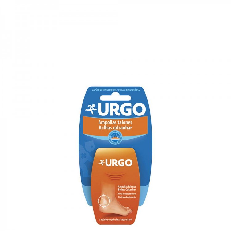 Pensos hidrocoloides com o formato ideal para o tratamento de bolhas no calcanhar, com extremidades finas e compressa central reforçada.