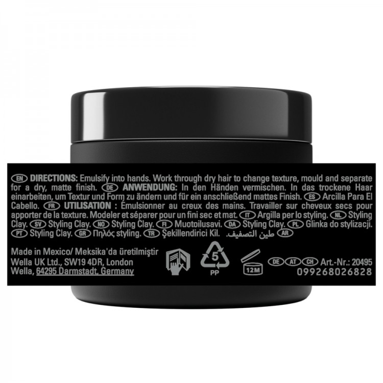 DescriçãoEsta argila de styling de acabamento mate proporciona fixação flexível e textura remodelável. Separa e define os fios, permitindo criar estilos versáteis e looks descontraídos com facilidade. A fórmula profissional oferece controlo, definição e volume, garantindo um acabamento natural e mate. Ideal para cabelos curtos a médios.