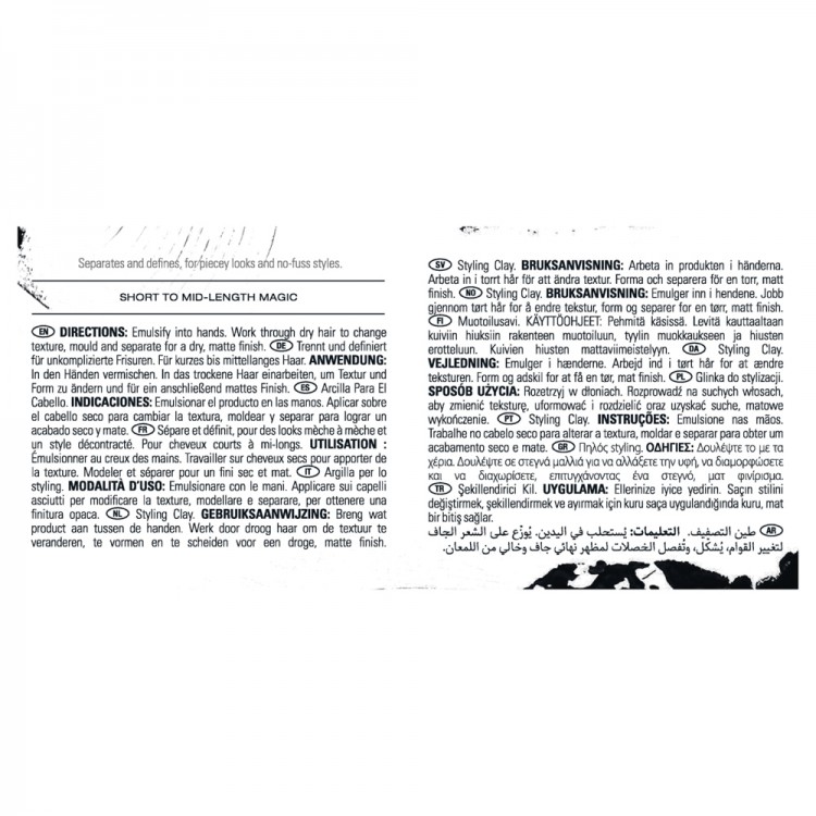 BenefíciosArgila de styling mate que proporciona textura natural e fixação flexível para cabelos curtos ou médios.