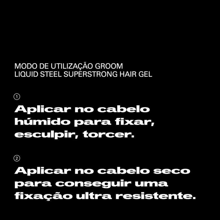 Como aplicarAplicar no cabelo húmido para fixar, esculpir, domar ou conseguir um acabamento ousado. Aplicar no cabelo seco para uma ultra fixação e controlo.