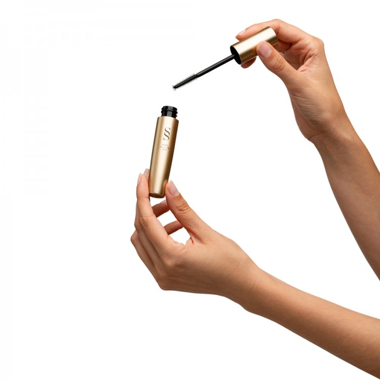 Máscara de cor preta que confere comprimento.