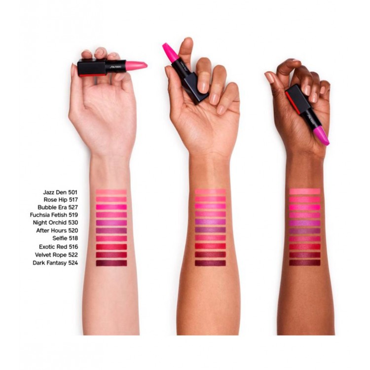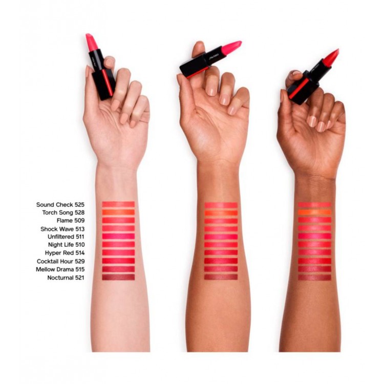 Como aplicar Shiseido Modernmatte Powder Lipstick 526 Kitten Heel 4.0gAplique com um movimento nos lábios. A ponta chanfrada do batom garante uma aplicação exata.