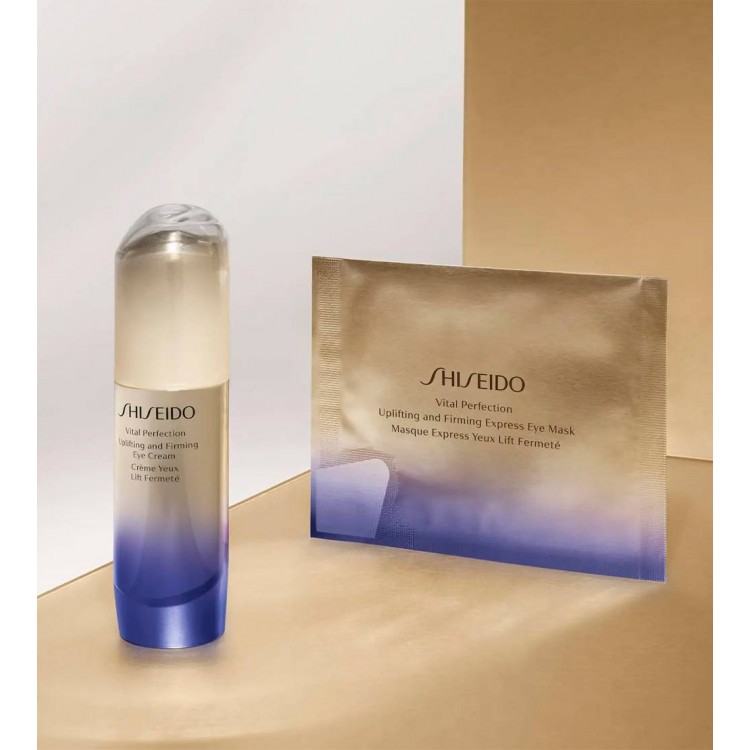 Como aplicar Shiseido Vital Perfection Up Lift Eye Mask 12 x 2Aplicar 2 a 3 vezes por semana. Aplicar os hidratantes antes da máscara. Abrir a partir do "Open" localizado no canto inferior esquerdo. Posicionar o canto triangular no canto interno dos olhos e a parte mais arredondada no canto externo. Deixar atuar durante 10 minutos e retirar. É indiferente o lado a usar da máscara. Usar imediatamente após a abertura. Durante o dia acompanhar com o uso de proteção solar com elevado SPF.