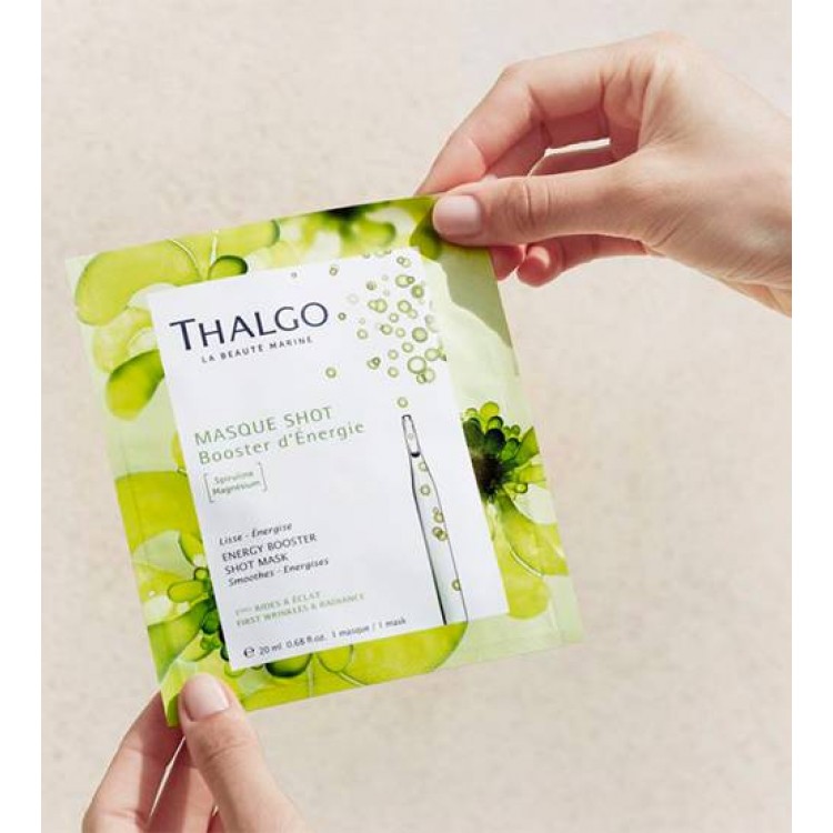 Como aplicar Thalgo La Beauté Marine Masque Shot Booster d'Énergie 20mlAplicar no rosto previamente limpo. Deixar atuar 10 minutos. Retirar a máscara; o excedente eliminar com a ajuda de algodão.