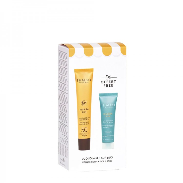 Thalgo Riviera Sun Fluido Protetor SPF50 50ml e Thalgo Riviera Sun Leite Refrescante Pós-Solar 30ml.