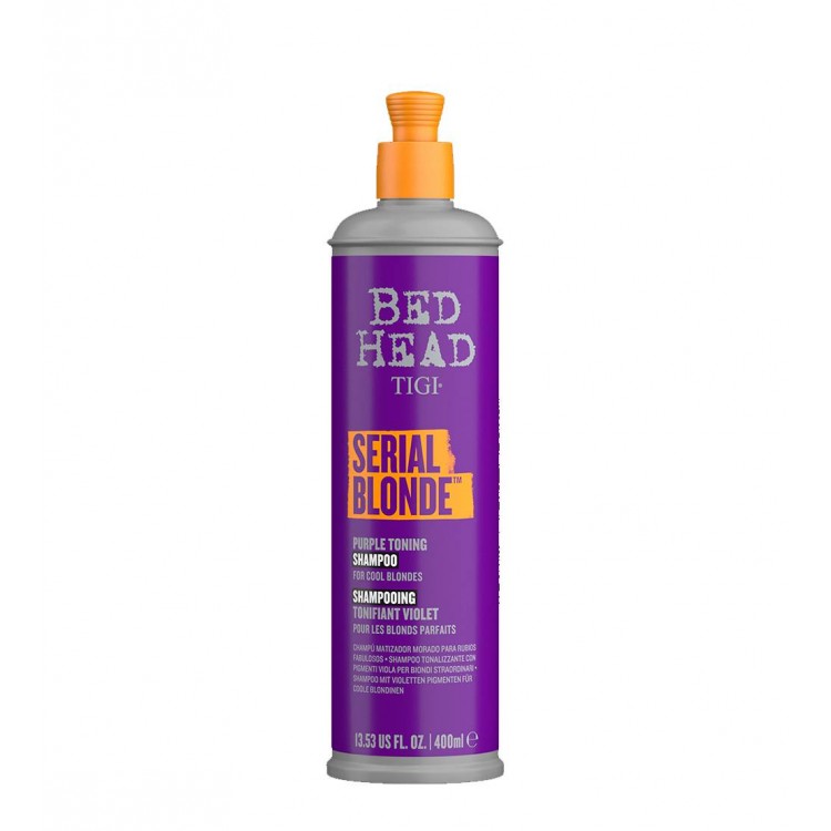 Shampoo Roxo Serial Blonde da Bed Head; novo por fora e tão épico por dentro. Uma formulação que melhora a cor, entregando resultados de salão e experiência de salão em casa.