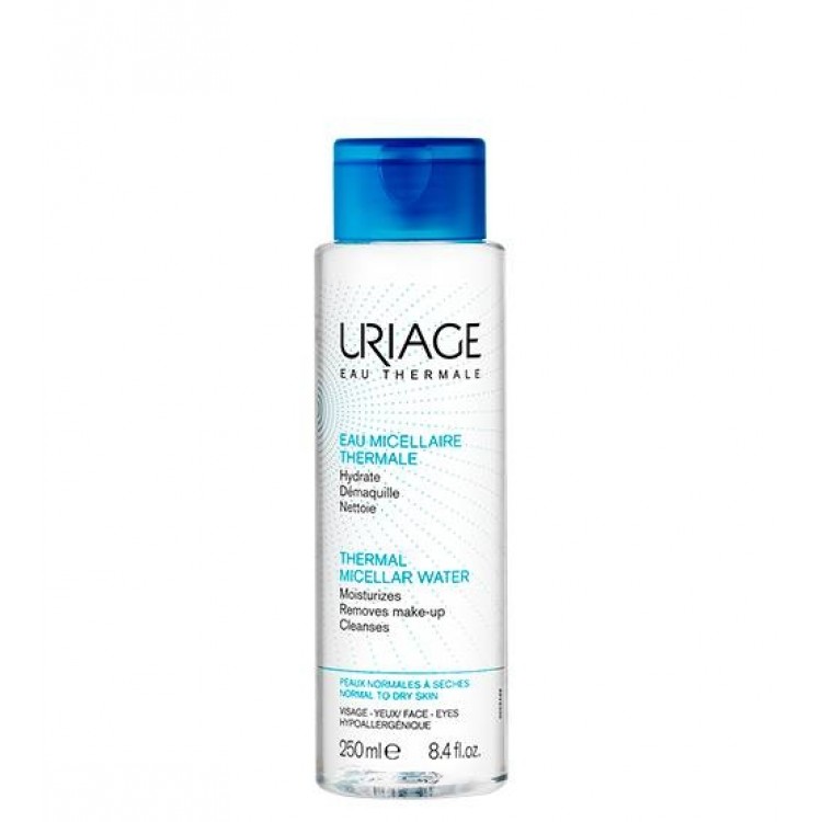 Uriage Água Termal Micelar Pele Normal a Seca remove a maquilhagem da pele seca devido às propriedades únicas da Água Termal de Uriage. Com tensioativos suaves não iónicos, que formam as micelas, removem eficazmente a maquilhagem e as impurezas.